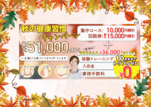 こんにちは!マイフルフィットのヨシヤマです。 10月中、今年最後のキャンペーン実施中です^ ^ 体験